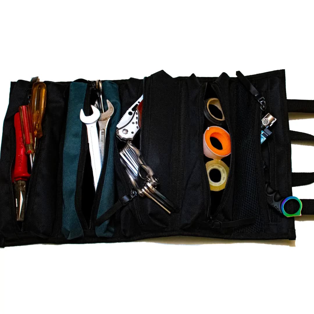 کیف وسایل و ابزار با قابلیت آویز شدن و جنس مقاوم و دور دوزی شده. بسیار جا دار و مناسب برای لوازم بزرگ.