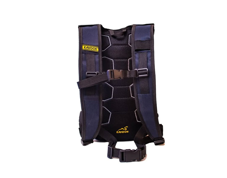 کولهپشتی با بدنه فرم دار دوخته شده، سه قسمت زیپ دار، سرزیپ های بلند، بند های نرم، دو ورودی بر روی بند ها، و قفل های قابل تنظیم.