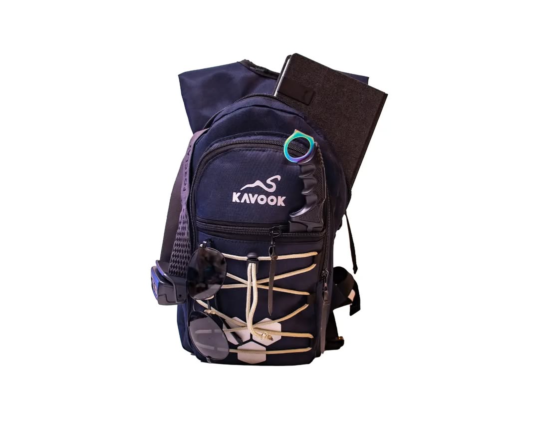 سه قسمت زیپ دار به همراه سرزیپ های بلند / کش قابل تنظیم جلوی کوله جهت حمل وسایل / دو ورودی بر روی بند ها جهت استفاده از انواع کیسه آب ها