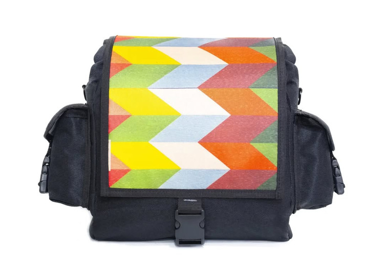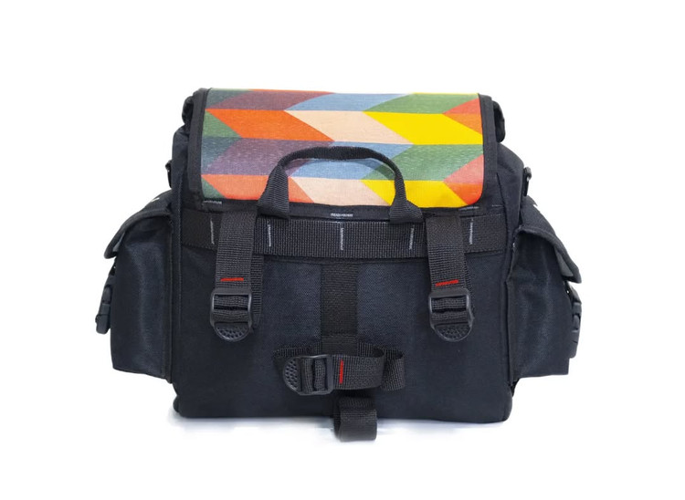 کیف طرح دار مناسب برای استفاده رو دوشی یا بر روی دوچرخه. بدنه مقاوم در برابر آب، جنس محکم و باکیفیت. دارای یک بخش اصلی و دو جیب کوچک جهت جاگیری لوازم. قابلیت افزایش حجم با در رولی و ایستایی کامل. دارای سه بند جهت اتصال بر دوچرخه و یک بند جهت استفاده رو دوشی.