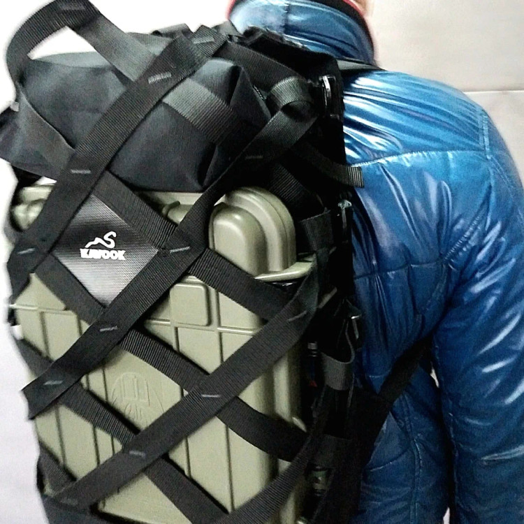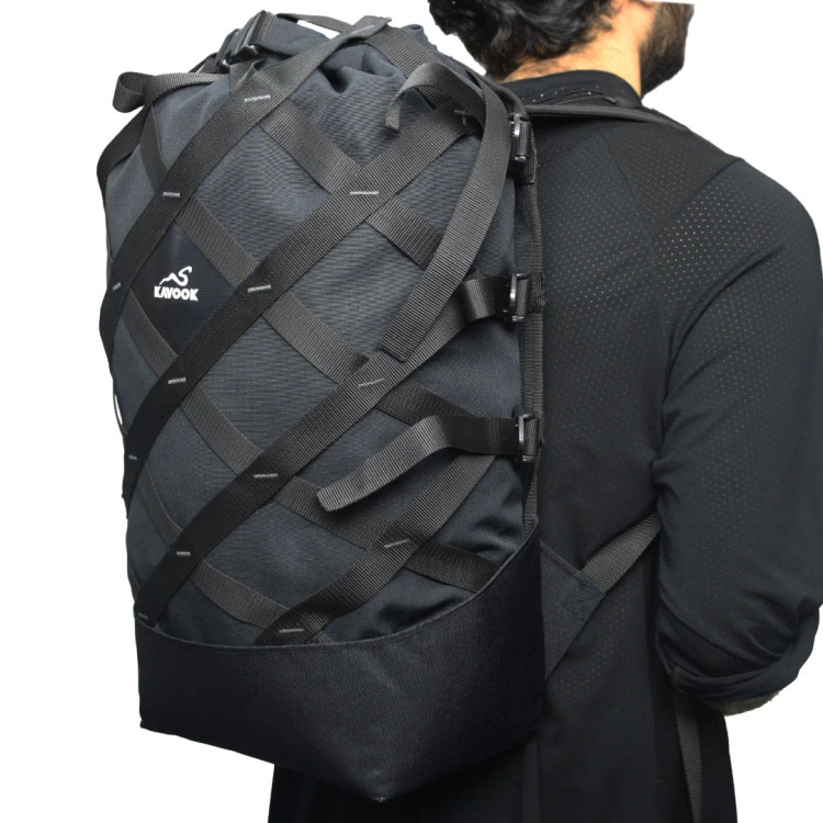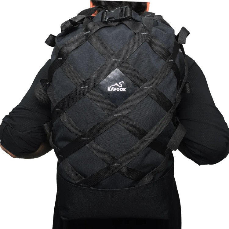 کوله مشبک با قابلیت حمل بارهای غیر متعارف دارای فریم داخلی نشکن و بدنه از تسمه های قوی با قفل نظامی. درای بگ جدا شونده و پشت تنفسی با قابلیت گردش هوا.